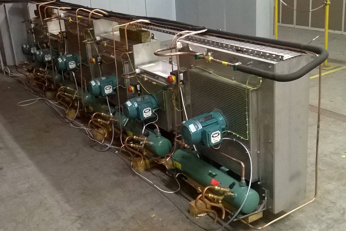 The systems comprise compressors, Ex condenser fans, evaporator fans & control electronics. Direct online starting of the compressor & fan motors is not possible, as the resulting demand currents would exceed the inverters' overload ratings. Soft starters would help but present limitations as to the number of starts per hour. VSDs present additional harmonic & peak current considerations, along with high frequency common-mode issues.